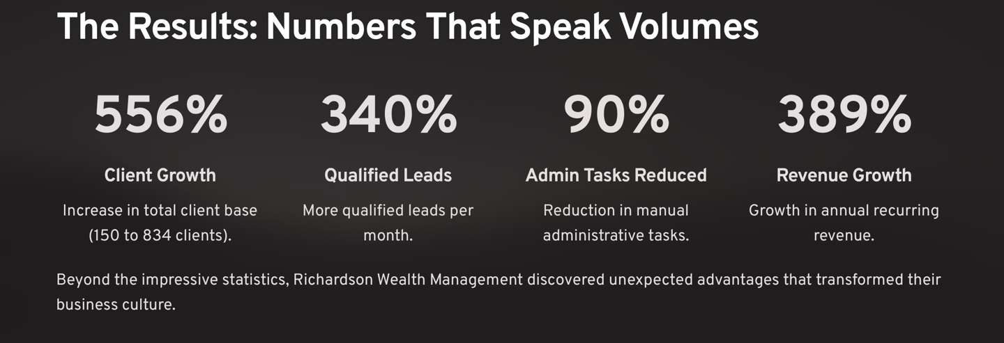 Richardson Wealth Management's success wasn't accidental—it resulted from strategic planning, expert implementation, and ongoing optimization. The same systematic approach that generated their 456% growth is available to financial advisory practices ready to transform their operations.