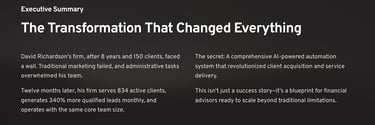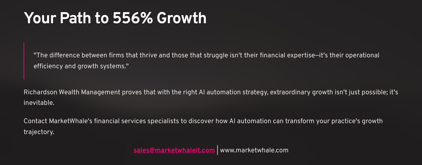 The difference between firms that thrive and those that struggle isn't their financial expertise—it's their operational efficiency and growth systems. Richardson Wealth Management proves that with the right AI automation strategy, extraordinary growth isn't just possible; it's inevitable.