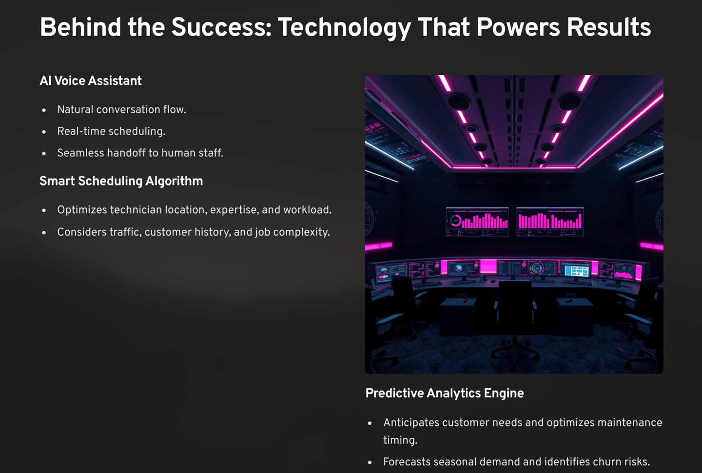We designed a comprehensive AI platform specifically addressing the unique needs of home service businesses. Here's exactly what we implemented: