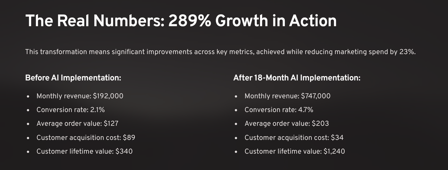 What if I told you that one strategic shift could transform your e-commerce business from struggling to scale into a revenue-generating powerhouse? That's exactly what happened when RetailMax, a mid-sized online furniture retailer, implemented our comprehensive AI strategy and saw their sales skyrocket by 289% in just 18 months.