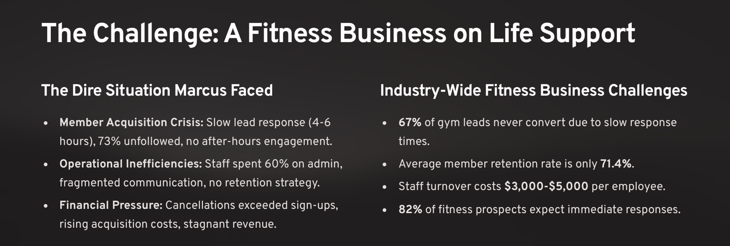 Marcus discovered that traditional gym management wasn't enough in today's competitive fitness landscape. His challenges were typical of many fitness business owners:
