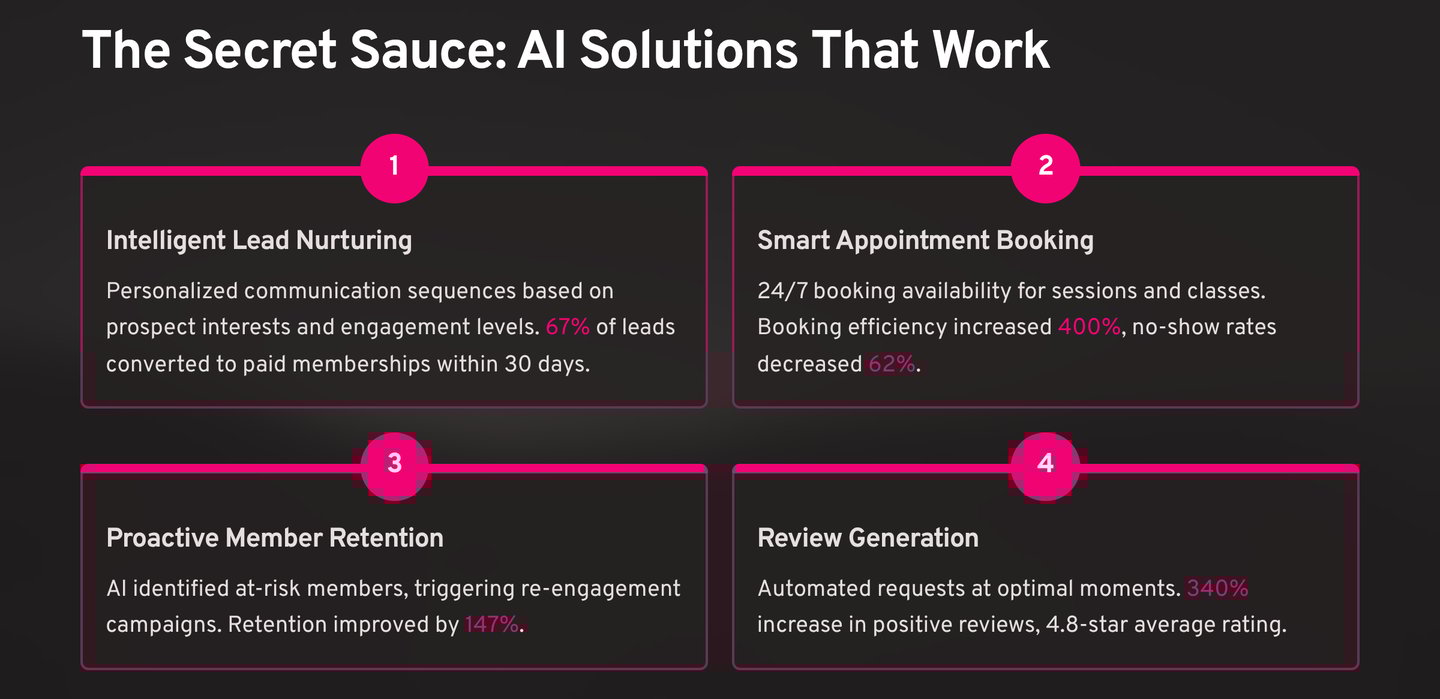 The AI platform automated the entire booking process, from initial consultation to ongoing class scheduling.