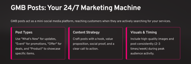 Rich Information Display: Your GMB profile can showcase everything from current promotions and events to detailed service descriptions and business attributes.