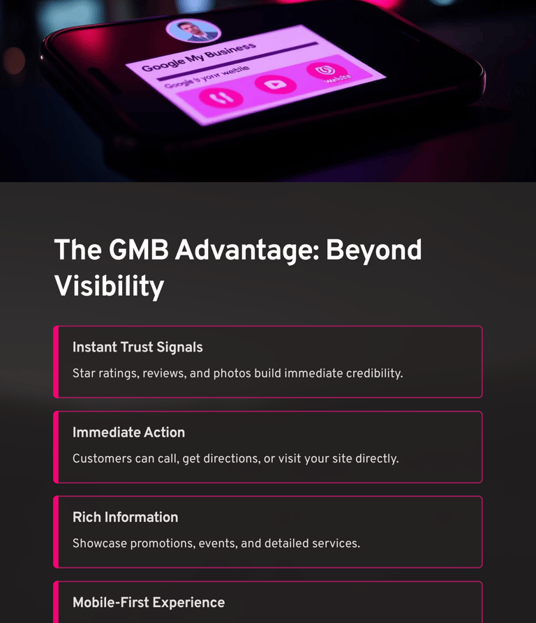 Mobile-First Customer Experience: With mobile searches accounting for over 60% of local queries, GMB provides an optimized mobile experience that converts browsers into customers.