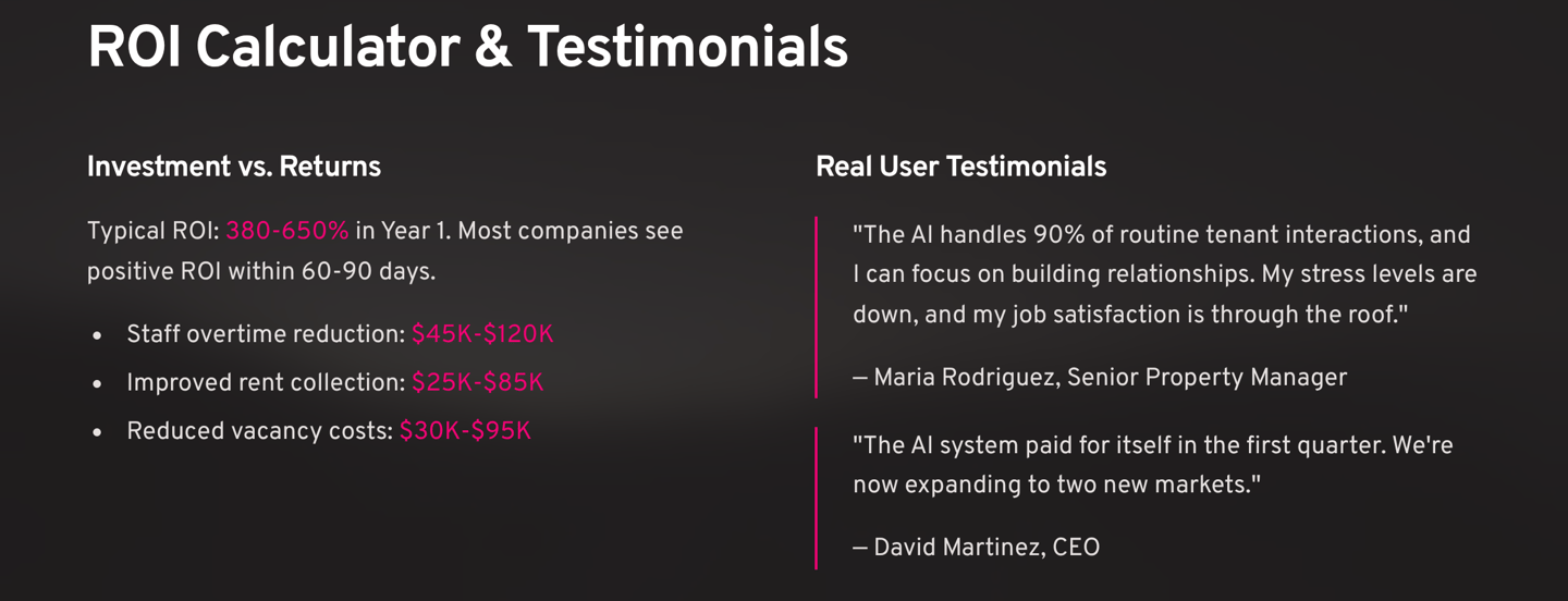 5. Proven ROI Track record of 380%+ ROI in Year 1 across 200+ property management implementations.