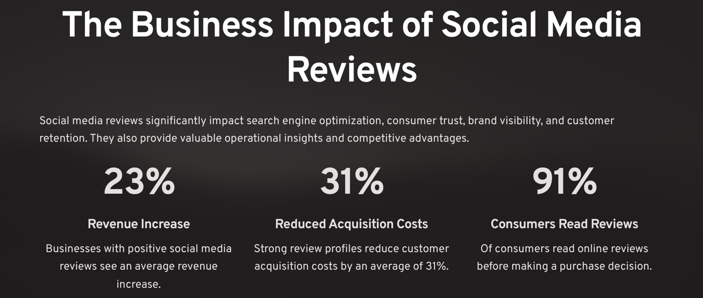 Competitive Advantage In competitive markets, social media reviews often serve as the deciding factor between similar businesses. Companies with superior review management strategies capture a disproportionate share of market attention and customer preference.