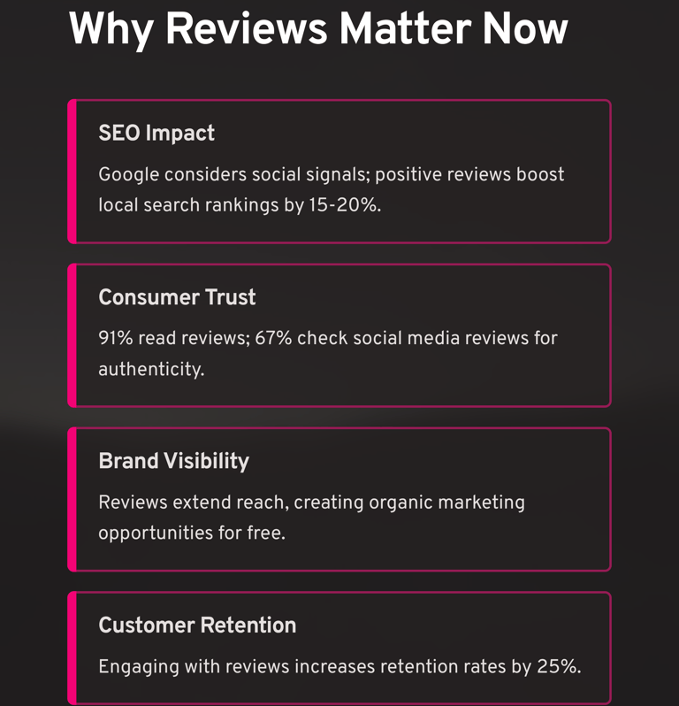 As someone who's worked with over 150 businesses across 15+ industries, I've witnessed firsthand how social media reviews can transform companies from struggling startups to industry leaders—or devastate established businesses that ignored this critical aspect of their digital presence.
